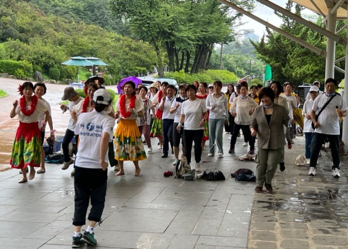 원미산 진달래동산 야외무대에서 시작된 이번 행사는 축하공연과 몸풀기 후 자원봉사자 20여 명의 안내에 따라 안전한 5천보 걷기 순으로 진행됐다.