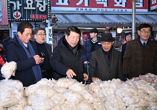 경기호연뉴스 민선기 기자 | 백경현 구리시장은 24일 설 명절을 앞두고 구리전통시장에서 박규창 구리전통시장 상인회장, 이춘본 구리시경제인연합회 회장 등을 비롯한 관계자 20여 명과 함께 설 명절 맞이 ‘전통시장 장보기의 날’ 행사를 가졌다.