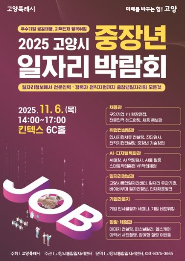 경기호연뉴스 민선기 기자 | 고양특례시는 오는 11월 6일 킨텍스 제2전시장 6C홀에서 열리는‘2025 고양시 중장년 일자리박람회’에 참여할 구인기업을 모집한다고 밝혔다.