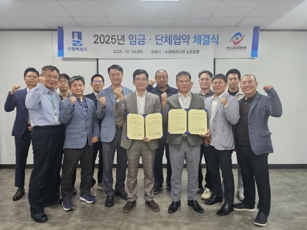 경기호연뉴스 민선기 기자 | 수원특례시는 14일 수원시청 노동조합(환경관리원)과 ‘2025년 임금 및 단체협약’을 체결했다.