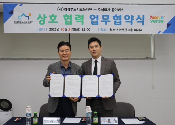 경기호연뉴스 민선기 기자 | (재)의정부도시교육재단은 지난 10월 21일 ㈜윤이버스와 ‘AI 기반 영어학습 협력 기반 구축을 위한 업무협약’을 체결했다.