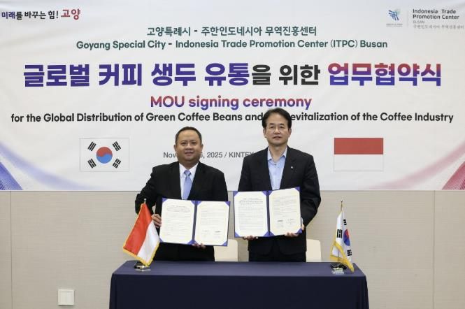 경기호연뉴스 민선기 기자 | 고양특례시는 지난 6일, ‘2025 카페·베이커리페어 시즌2’가 열리고 있는 킨텍스에서 주한인도네시아 무역진흥센터(ITPC 부산)와 ‘글로벌 커피 생두 유통 협력 협약’을 체결했다.