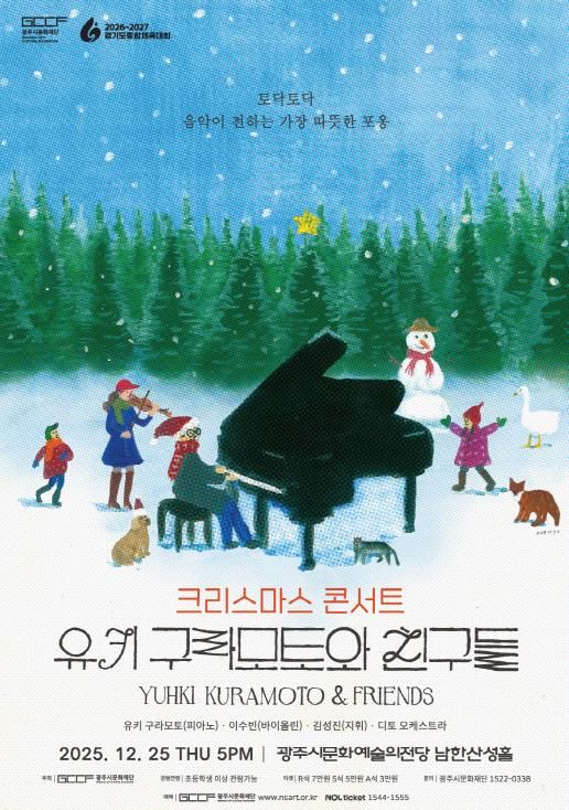 경기호연뉴스 민선기 기자 | (재)광주시문화재단은 오는 12월 25일 오후 5시, 광주시문화예술의전당 남한산성홀에서 ‘2025 크리스마스 콘서트 '유키 구라모토와 친구들'을 개최한다.