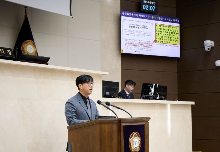 경기호연뉴스 민선기 기자 | 용인특례시의회 김병민 의원(구성동,마북동,동백1동,동백2동/더불어민주당)은 16일 열린 제298회 임시회 제1차 본회의에서 5분 자유발언을 통해 ‘제2차 경기도 도시철도망 구축계획’에 반영된 동백–신봉선 철도망의 원활한 추진을 위한 정책적 대응과 선제적 준비를 강력히 촉구했다.
