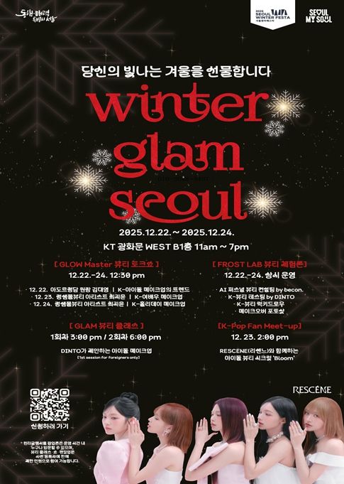 경기호연뉴스 민선기 기자 | 서울시가 서울윈터페스타를 찾은 국내외 관광객에게 차별화된 한류 경험을 제공하기 위해 K-뷰티를 주제로 한 ‘윈터 글램 서울(Winter Glam Seoul)’ 팝업 행사를 12월 22일부터 24일까지 3일간 개최한다.