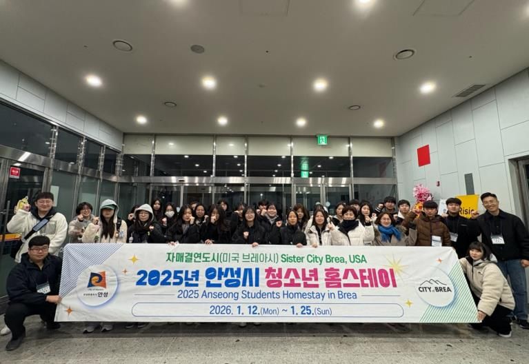 경기호연뉴스 민선기 기자 | 오늘 12일 안성시 청소년 홈스테이에 참여하는 30명의 안성시 청소년들이 미국 캘리포니아주 브레아시로 출국했다.