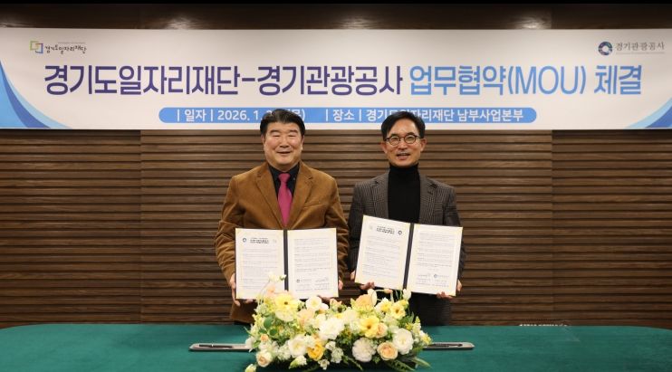 경기호연뉴스 민선기 기자 | 경기도일자리재단과 경기관광공사는 22일 경기도일자리재단 남부사업본부에서 ‘경기북부 관광 활성화 및 유연근무 확산을 위한 업무협약(MOU)’을 체결했다.