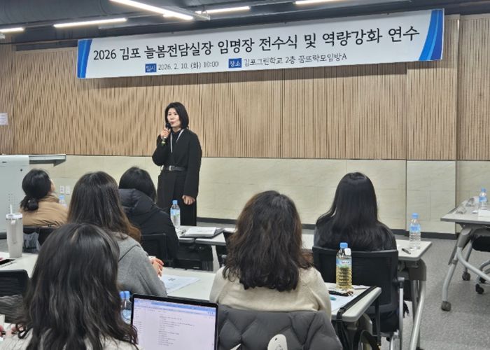 경기호연뉴스 민선기 기자 | 경기도김포교육지원청은 2월 10일 2026 늘봄전담실장 25명을 대상으로 임명장 전수식과 함께 초등 방과후·돌봄 교육 운영의 전문성 및 현장 대응 역량 강화를 위한 ‘2026 늘봄전담실장 역량강화 연수’를 실시했다.