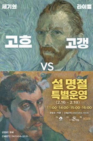 경기호연뉴스 민선기 기자 | 군산예술의전당이 현재 선보이는 기획전시 세기의 라이벌 '고흐 VS 고갱'을 설 연휴인 2월 16일부터 18일까지 휴관 없이 운영한다.