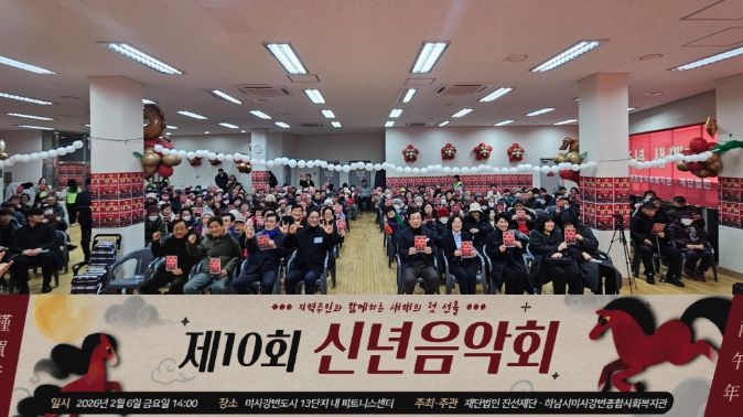 경기호연뉴스 민선기 기자 | 2026년 붉은 말의 해 병오년을 맞이하여 하남시미사강변종합사회복지관과 재단법인 진선재단은 지난 6일 ‘제10회 지역주민 신년음악회’를 공동 주최·주관하고, 300명 이상의 지역주민이 참석한 가운데 새해의 힘찬 시작을 알렸다.