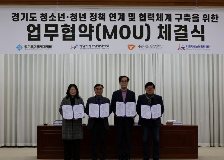 경기호연뉴스 민선기 기자 | 경기도미래세대재단은 12일 옛 경기도청사 신관 4층 대회의실에서 수원·성남·시흥시청소년청년재단과 ‘경기도 청년 정책 연계 및 협력체계 구축 업무협약’을 체결했다.