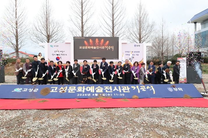 경기호연뉴스 민선기 기자 | 고성군과 무학그룹은 4월 1일, 고성읍 기월리 147-5일원에서 고성문화예술전시관 기공식을 성대히 개최하며 전시관 건립의 본격적인 시작을 알렸다.