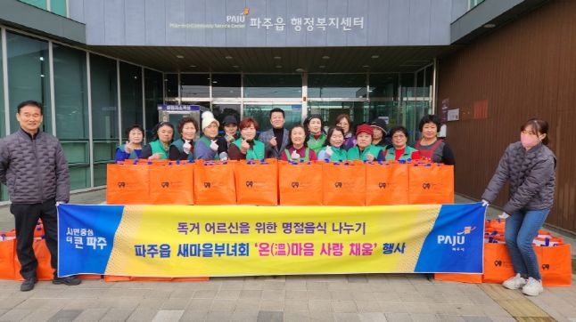 경기호연뉴스 김대엽 기자 | 파주시 파주읍 새마을부녀회는 지난 7일 설 명절을 맞아 저소득 홀몸 어르신을 위한 명절 음식 나눔 행사인 ‘온(溫)마음 사랑채움’을 진행했다.