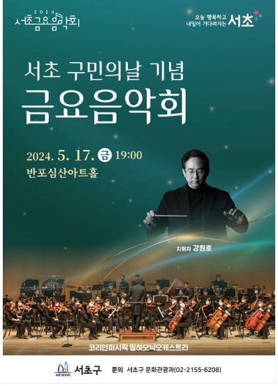 구는 오는 17일 19시 반포심산아트홀(심산문화센터, 반포동114-3)에서 '서초구민의 날 기념 금요음악회'를 연다고 밝혔다.