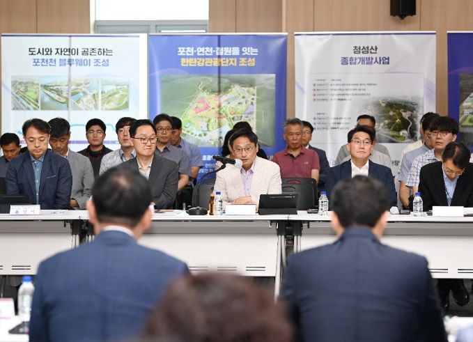 이어 경기도는 경기북부 대개발 성과 및 추진현황과 그간 건의사항 추진상황을 공유했다. 참석자들은 특히 민선 8기 들어 집중된 경기북부 도로 투자 결과에 따른 지방도368 기지~길명, 국지도56호선 구읍~직두 간 도로계획 등 포천시 기반 시설 확충에 큰 관심을 보였다.