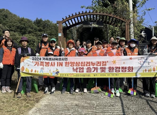 경기호연뉴스 민선기 기자 | (사)광주시자원봉사센터는 경기도 광주시 관내 거주 2인 이상 가족(부모와 자녀, 부부, 조손, 형제자매 등 가족 형태 무관)의 건강한 가족문화 형성과 가족봉사활동 활성화를 위해 12일 불당리 일원에서 ‘가족봉사 IN 한양삼십리누리길’ 환경정화 봉사활동을 추진했다.