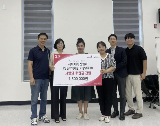 경기호연뉴스 민선기 기자 | 시흥시 신천동에 있는 시흥 대표 전통시장인 삼미시장이 지난 8월 26일 삼미시장 상인회 교육장에서 시흥시1퍼센트복지재단에 150만 원을 기부했다. 이번 기부금은 지난 7월 12일부터 8월 10일까지 신세계사이먼 시흥 프리미엄 아울렛이 주최한 전통시장 활성화 행사에서 마련된 수익금 전액이다.