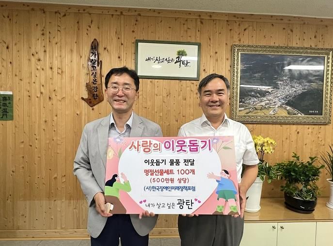 경기호연뉴스 민선기 기자 | 파주시 광탄면은 지난 3일 (사)한국장애인미래정책포럼으로부터 500만 원 상당의 명절선물 100세트를 기탁받았다고 밝혔다.