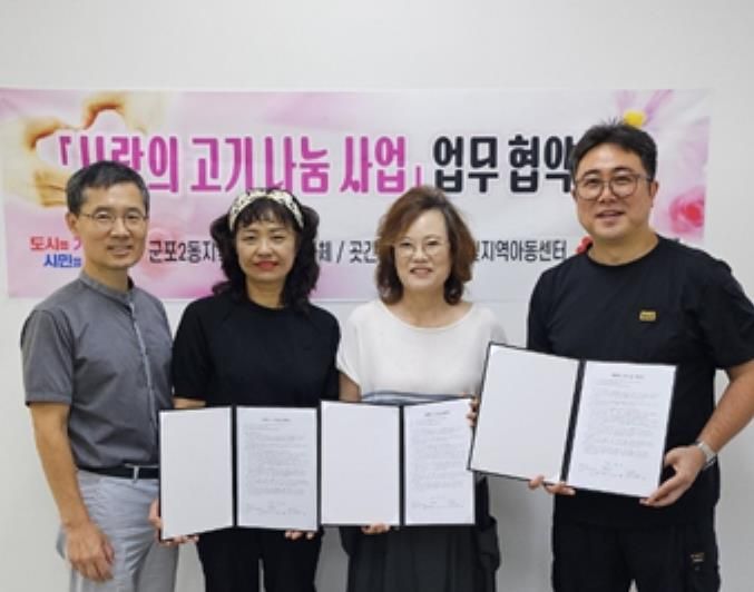 경기호연뉴스 민선기 기자 | 군포시 군포2동 지역사회보장협의체는 2025년 9월 8일 지역업체 ‘곳간인심’(대표자 박원남) 및 ‘당동큰빛지역아동센터’와 함께 사랑의 고기나눔 협약을 체결했다.