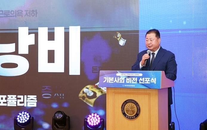 경기호연뉴스 민선기 기자 | 파주시가 회장 도시를 맡고 있는 기본사회지방정부협의회는 지난 8일 국회도서관 대강당에서 ‘기본사회 비전 선포식’을 열고, ▲누구나 공정한 기회를 갖는 사회 ▲차별과 소외, 불평등과 사각지대 없는 사회 ▲지역경제가 되살아나는 사회 ▲미래세대와 공존하는 지속가능한 사회라는 비전을 선포, 기본사회 모델을 전국에 확산시킬 것을 선언했다.