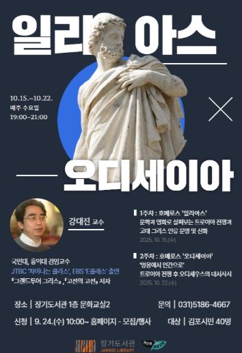 경기호연뉴스 민선기 기자 | 김포시 장기도서관은 야간 인문학 프로그램 ‘일리아스 X 오디세이아’를 오는 10월 15일, 10월 22일 매주 수요일 오후 7시부터 9시까지 장기도서관 문화교실에서 운영한다고 밝혔다.