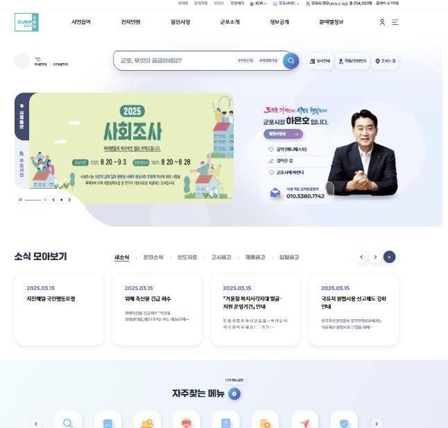 경기호연뉴스 민선기 기자 | 군포시는 사용자 편의성 향상과 효율적인 정보 제공을 위해 시 홈페이지 메인 디자인을 개편했다고 발표했다.