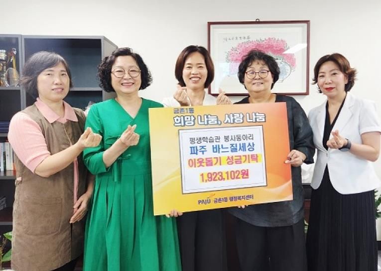 경기호연뉴스 민선기 기자 | 파주시 금촌1동은 지난 10일 평생학습관 봉사동아리 ‘파주 바느질세상’으로부터 이웃사랑 성금 1,923,102원을 기탁 받았다고 밝혔다.