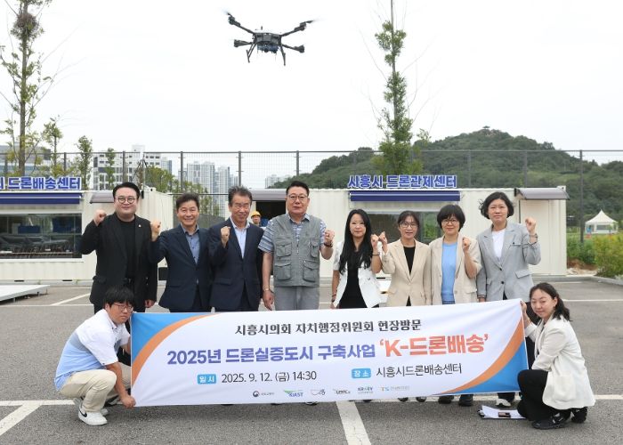 위원들은 드론교육센터에서 드론배송센터 운영 현황을 청취한 뒤, 실제 배송 시연 과정을 참관하며 사업의 실효성 및 안전성을 점검했다. 이어 배곧 한울공원 배송지 현장을 둘러보며 드론배송이 시민 생활에 어떤 변화를 가져올 수 있을지 논의했다.