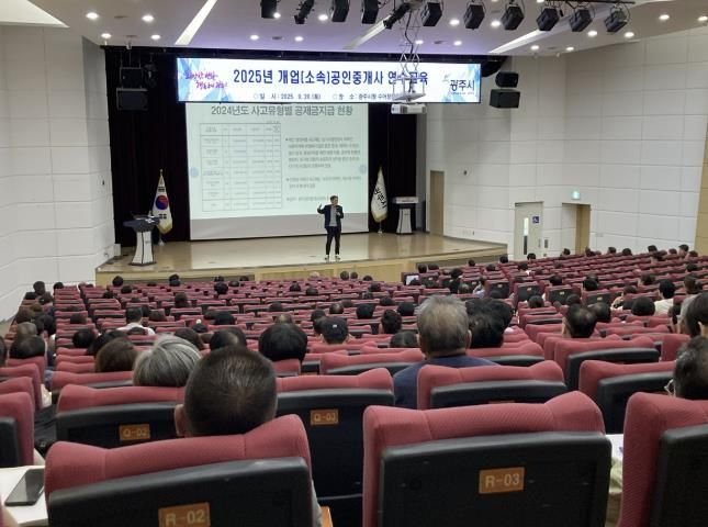경기호연뉴스 민선기 기자 | 광주시는 지난 20일 시청 수어장대홀에서 지역 내 개업(소속) 공인중개사 300여 명을 대상으로 ‘2025년 개업(소속) 공인중개사 연수 교육’을 실시했다.