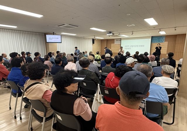강의는 서울시복지재단 고립예방센터 최문경 강사가 맡아 사회적 고립과 고독사의 정의를 비롯해 발생 원인과 위험 요인, 지역사회의 대응 방향 등을 설명했다. 또한 국내·외 고독사 현황과 정책적 대응 사례를 공유하며, 지역주민들이 생활 속에서 위험 신호를 인식하고 예방 활동에 동참할 수 있도록 구체적인 실천 방법을 제시했다.