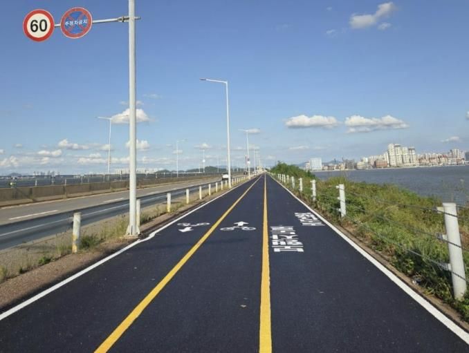 경기호연뉴스 민선기 기자 | 시흥시는 지난 9월 8일부터 18일까지 시화호 방조제 자전거도로 3.8km 구간에 대한 재포장 및 도색 정비 공사를 완료했다.