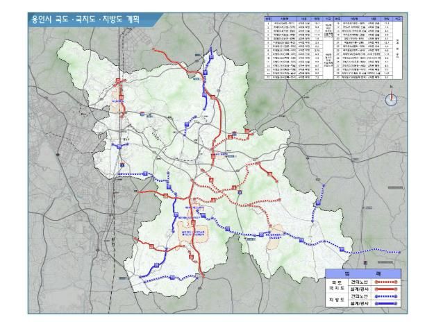 현재 용인시에서는 국도 3곳, 국지도 5곳, 지방도 6곳 등 총 14개 노선에서 도로 건설과 확장 사업이 추진되고 있다.