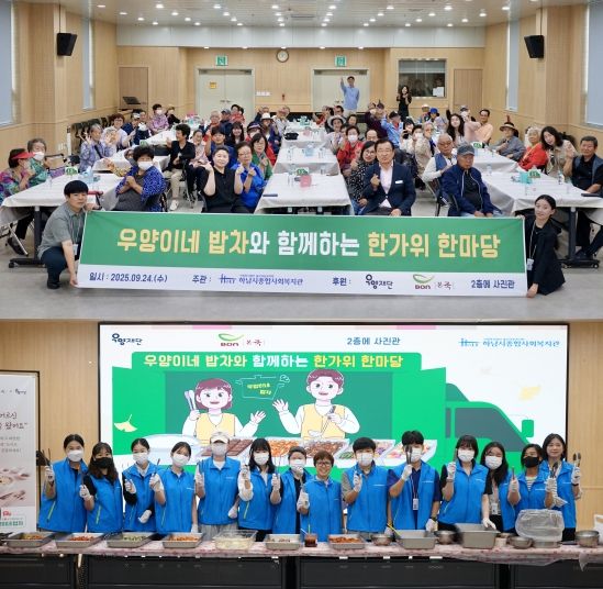 경기호연뉴스 민선기 기자 | 하남시종합사회복지관은 24일 복지관 4층 대강당에서 ‘우양이네 밥차와 함께하는 한가위 한마당’을 개최했다. 우양재단과 본죽의 후원, ‘2층에 사진관’의 재능기부로 진행됐으며, 명절을 앞두고 사회적 고립이 우려되는 저소득 어르신 60명을 초청해 한가위 점심과 명절 선물, 장수사진 촬영 서비스를 제공했다.