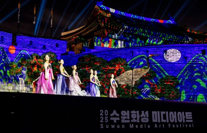경기호연뉴스 민선기 기자 | 2025 수원화성 미디어아트가 27일 화서문에서 개막했다.