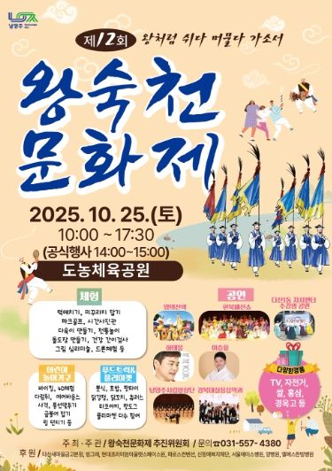 한편, 왕숙천의 아름다운 자연을 배경으로 펼쳐지는 이번 문화제는, 일상 속 쉼표가 필요한 시민들에게 ‘왕처럼 쉬고 머무는 여유로운 하루’를 선사하며, 지역의 전통과 문화를 함께 즐기는 뜻깊은 시간이 될 것으로 기대된다.
