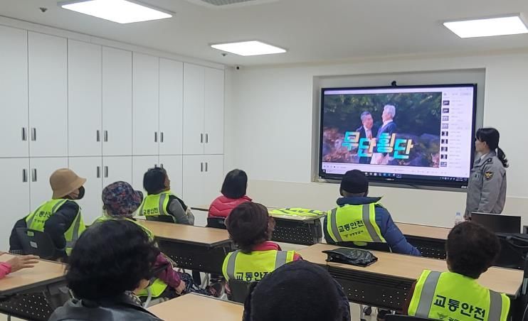 경기호연뉴스 민선기 기자 | 광명경찰서는 지난 21일 광명종합사회복지관을 찾아 자원재생활동가 어르신을 상대로 ‘찾아가는 교통안전 교육’을 실시했다.