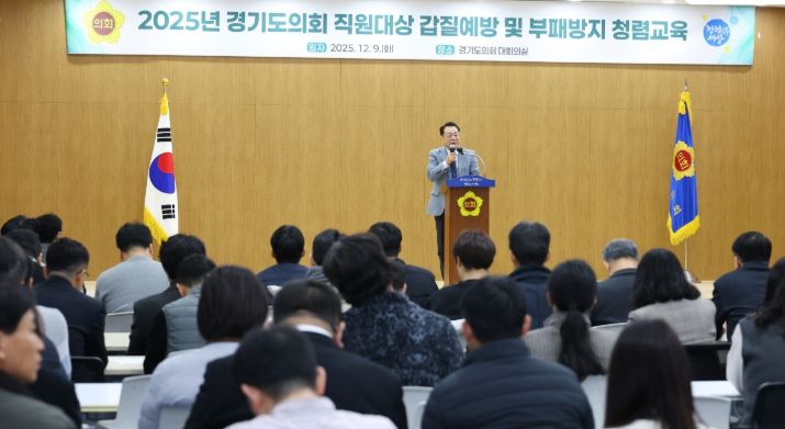 경기호연뉴스 민선기 기자 | 경기도의회는 9일 오전 의회 대회의실에서 전 직원을 대상으로 ‘갑질예방 및 부패방지 청렴교육’을 실시했다.