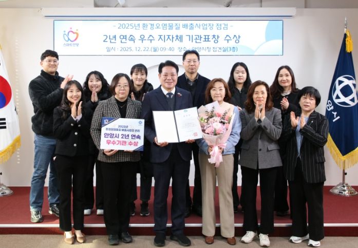 경기호연뉴스 민선기 기자 | 안양시는 경기도가 주관하는 ‘2025년 환경오염물질 배출사업장 관리평가’에서 지난해에 이어 2년 연속 우수기관에 선정되고, 경기도지사 표창을 받았다고 22일 밝혔다.