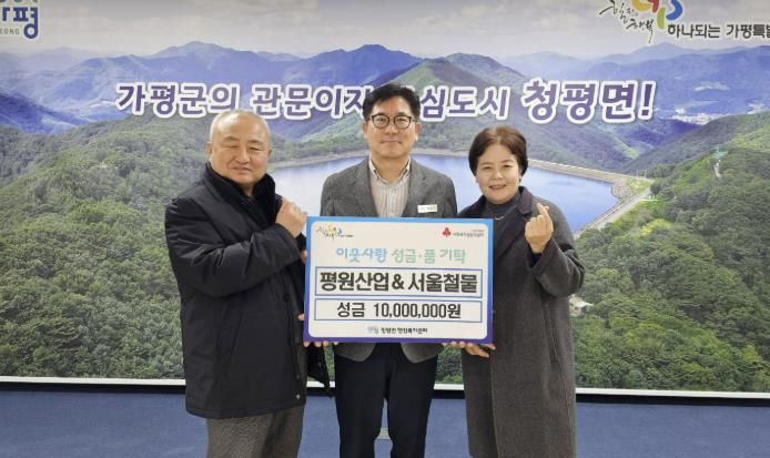 이에, 박성규 청평면장은 “큰 금액의 성금을 기탁해 주신 평원산업과 서울철물에 깊은 감사의 말씀을 드린다”며 “전해주신 성금은 도움이 꼭 필요한 이웃들에게 소중하게 전달하겠다”고 밝혔다.