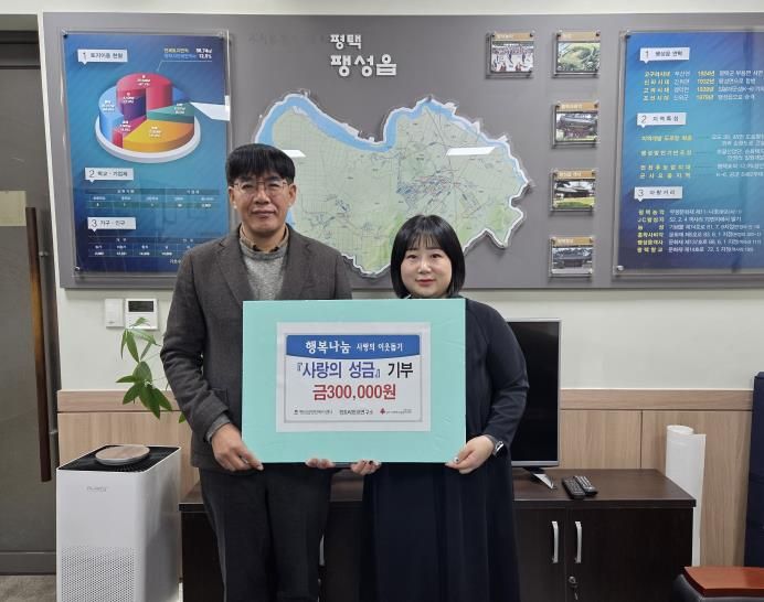 경기호연뉴스 민선기 기자 | 경토리민요연구소의 박정은 대표는 지난 24일, 팽성읍 행정복지센터를 방문해 저소득 가구 지원을 위한 성금 30만 원을 전달했다.