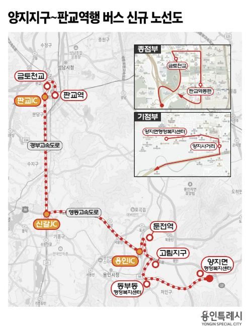 경기호연뉴스 민선기 기자 | 용인 양지지구를 출발해 고림동과 둔전역을 거쳐 성남 판교역까지 운행하는 버스 노선이 확정됐다.