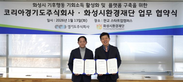 경기호연뉴스 민선기 기자 | 경기도주식회사는 13일 경기도 성남시 판교 스타트업캠퍼스에서 화성시환경재단과 ‘기후행동 기회소득 활성화 및 화성시 플랫폼 구축을 위한 업무협약’을 체결했다.