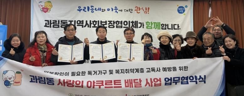 경기호연뉴스 민선기 기자 | 시흥시 과림동 지역사회보장협의체는 지난 1월 19일 ㈜한국야쿠르트 역곡점과 복지 취약계층 안부 확인을 위한 ‘사랑의 요구르트 배달’ 사업 추진 업무협약을 체결했다.