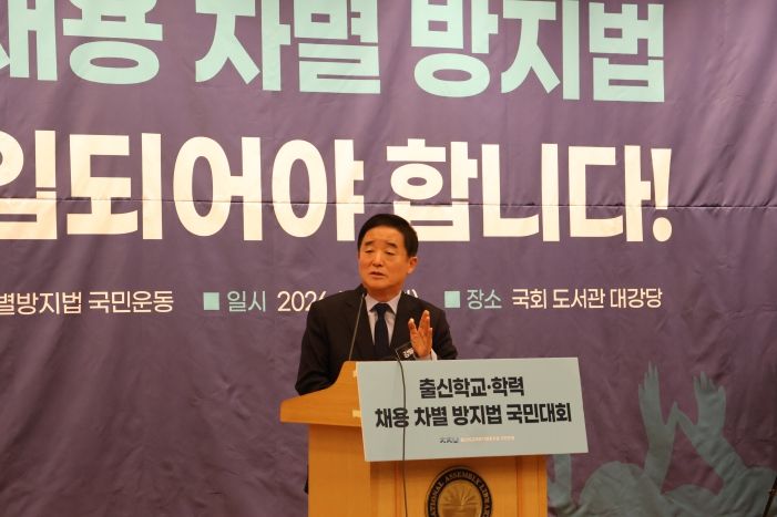 20일 국회도서관 대강당에서 열린 ‘출신학교 채용 차별 방지법 추진 국민대회’에는 강득구 의원과 300여개 시민단체 관계자는 물론이고, 교육부 최교진 장관, 고용노동부 김영훈 장관, 국가교육위원회 차정인 위원장, 서울특별시교육청 정근식 교육감 등이 참석했다. 국회에서는 더불어민주당 박홍근·서영교·김주영·백승아 의원과 조국혁신당 서왕진·강경숙 의원 등이 참석했다. 이날 국민대회에는 300명이 넘는 시민들이 함께했다.
