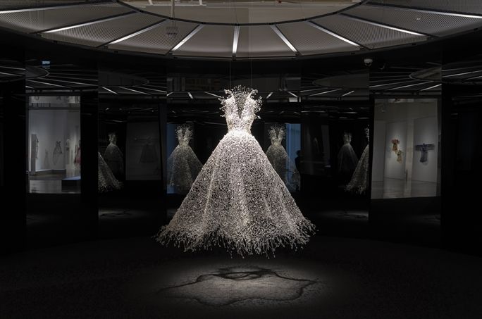 특히 3층 전시장 도입부 'Dreaming' 공간이 이번 전시를 대표하는 화제의 공간이자 주요 포토스폿으로 큰 인기를 끌고 있다. 어둠 속 중심에 전시된 ‘백매(白梅)’ 드레스는 검은 거울과 조명 연출을 통해 몽환적인 장관을 만들어내며 관람객의 발길을 붙잡고 탄성을 자아낸다.