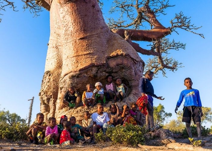 마다가스카르의 바오밥은 수백 년에서 수천 년에 이르는 시간을 살아온 존재로, 현지에서는 신성한 나무이자 공동체의 정신적 지주로 여겨진다. 서 작가는 특히 마다가스카르에서도 오지 중의 오지에서 발견된, 5천 년의 시간을 견뎌온 ‘신이 된 나무’ 바오밥을 단순한 이국적 풍경이 아닌 인간보다 오래 살아온 하나의 ‘존재’로 바라본다. 작품 속 바오밥은 광활한 대지 위에 고요히 서 있으며, 빛과 그림자 속에서 마치 신화적 존재처럼 드러난다.