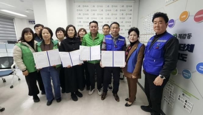 경기호연뉴스 민선기 기자 | 시흥시 목감동 행정복지센터는 지난 2월 3일 취약계층의 복지증진과 복지 사각지대 해소를 위해 동 행정복지센터 회의실에서 목감동 새마을남녀협의회 및 시흥시 처음처럼 봉사회 등 관계단체와 업무협약을 맺었다.