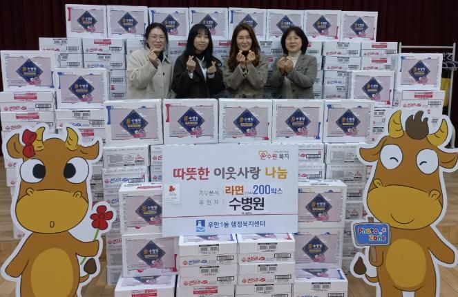 경기호연뉴스 민선기 기자 | 수병원은 지난 4일, 설 명절을 맞아 어려운 이웃들을 위해 라면 200박스를 우만1동 행정복지센터에 기부하며 이웃사랑을 실천했다.