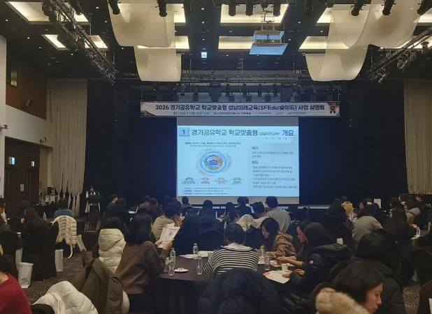 경기호연뉴스 민선기 기자 | 경기도성남교육지원청은 5일 밀리토피아호텔에서 관내 초·중·고·특수학교 교원 및 지자체 관계자 등 300여 명이 참석한 가운데 ‘2026 경기공유학교 학교맞춤형 성남미래교육(숲에듀) 사업설명회’를 개최했다.