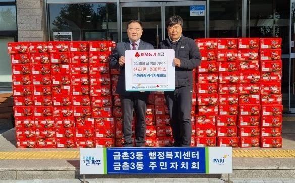 경기호연뉴스 민선기 기자 | 파주시 금촌3동은 ㈜화림중앙식자재마트 파주금촌역점으로부터 병오년 설 명절을 맞아 지난 3일, 라면(20개입) 200상자를 관내 취약계층과 노인 가구를 위해 기탁하며 따뜻한 나눔을 실천했다.